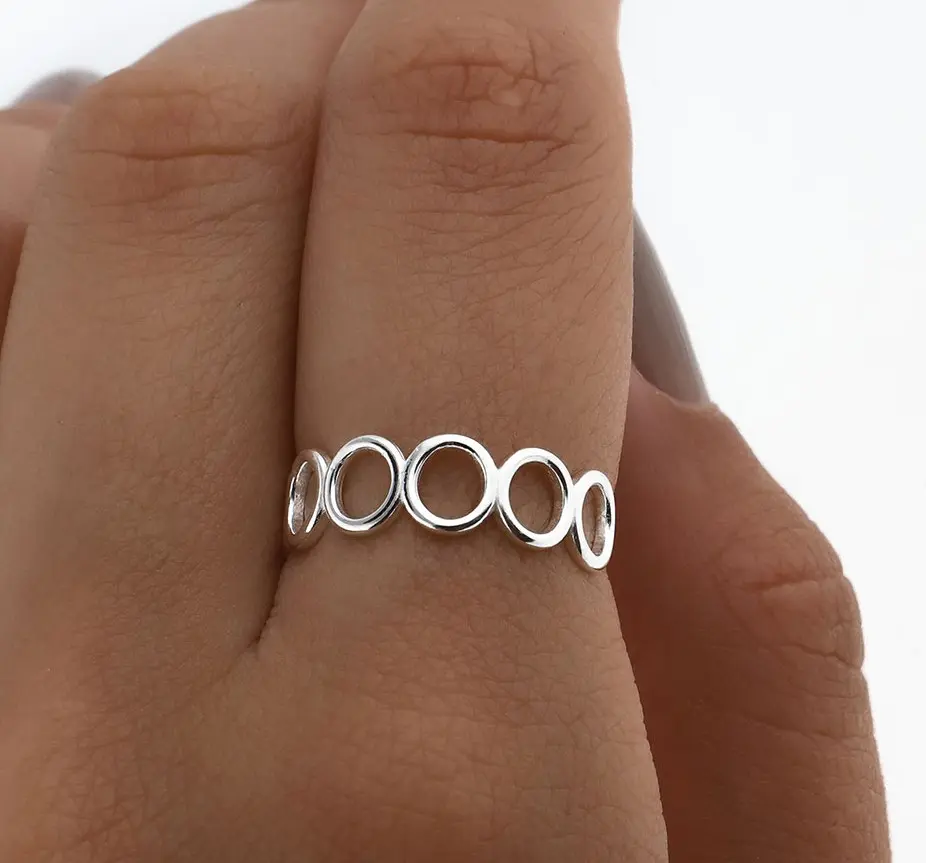 Un anillo de plata deslumbrante que irradia elegancia y simplicidad. Hecho con plata de alta calidad, este anillo destaca por su brillo sutil y su diseño minimalista. Su forma suave y líneas limpias capturan la esencia de la sofisticación moderna. Es el accesorio perfecto para agregar un toque de estilo refinado a tu atuendo diario, sin esfuerzo y con distinción.