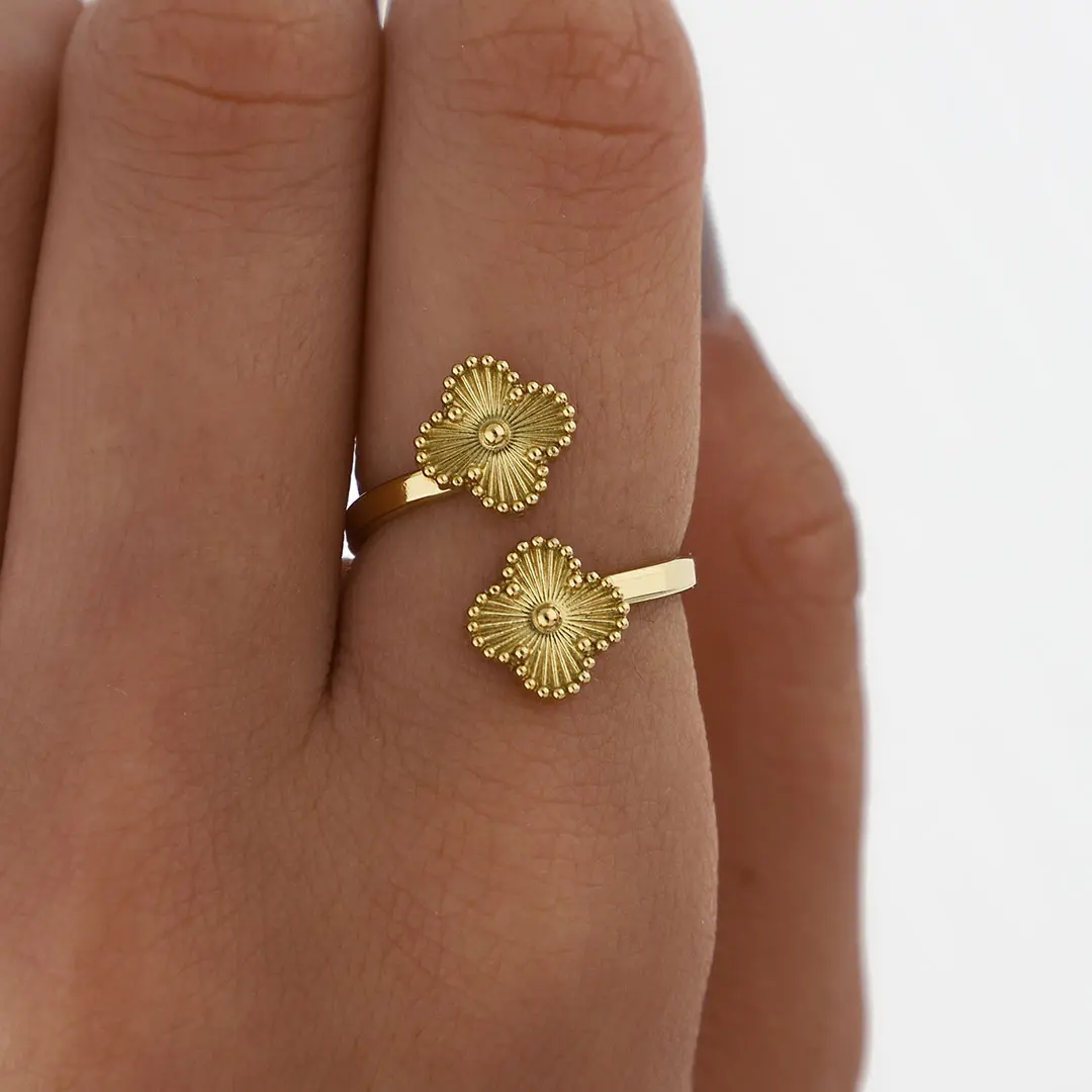 ANILLO REGULABLE TREBOL ACERO DORADO
