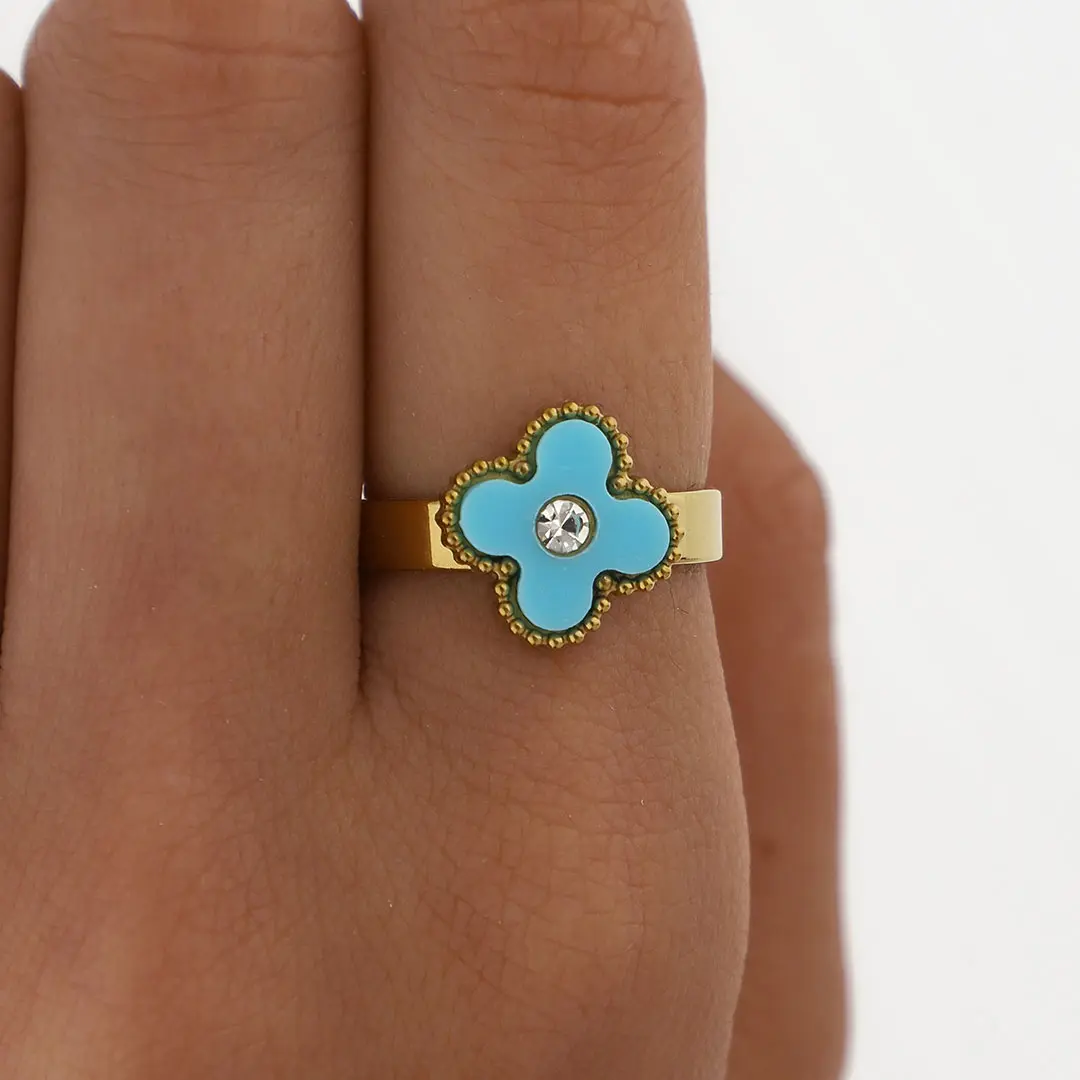 ANILLO TREBOL ACERO DORADO
