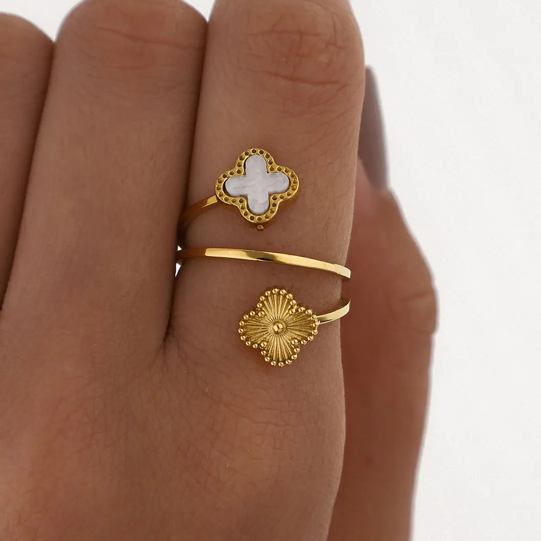 ANILLO TREBOL ACERO DORADO
