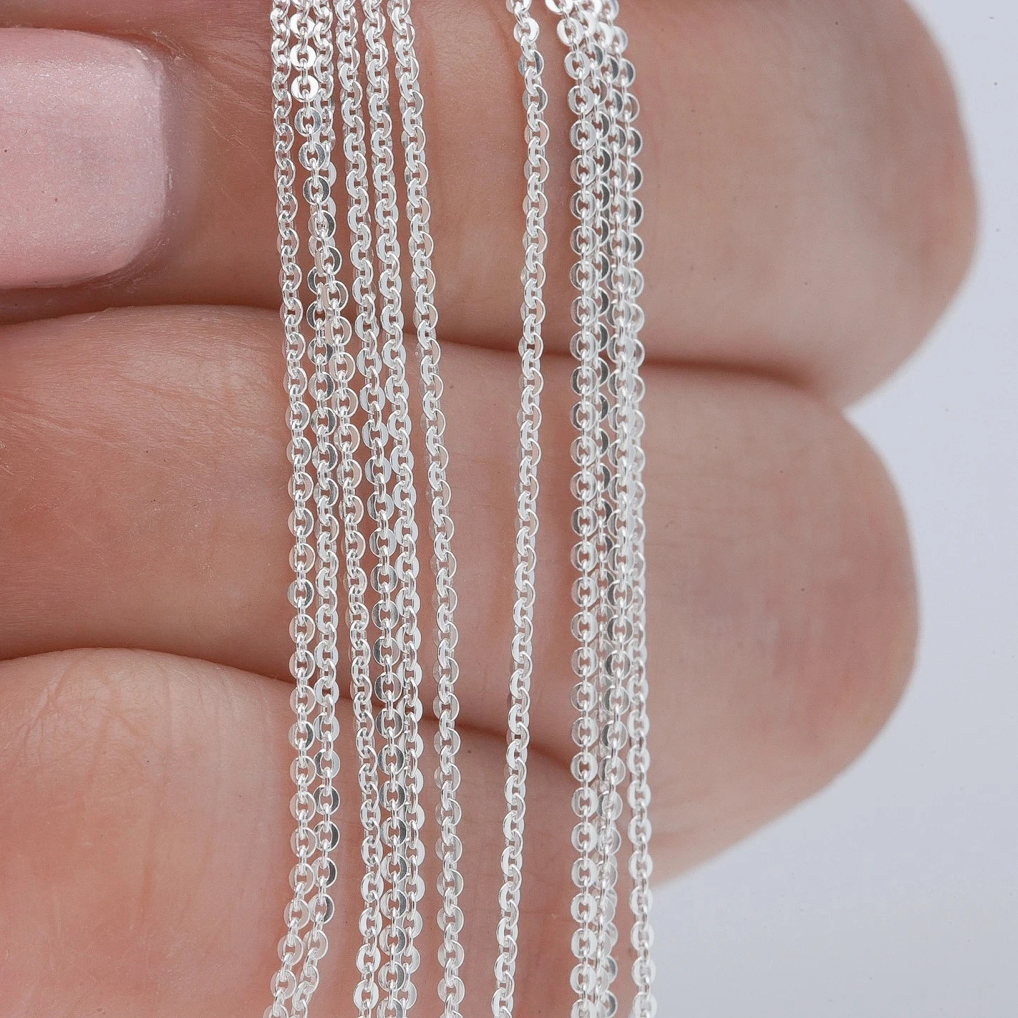Esta cadena de plata cautiva con su elegancia atemporal. Sus eslabones pulidos y suaves reflejan la luz de manera sutil, añadiendo un toque de sofisticación a tu estilo.