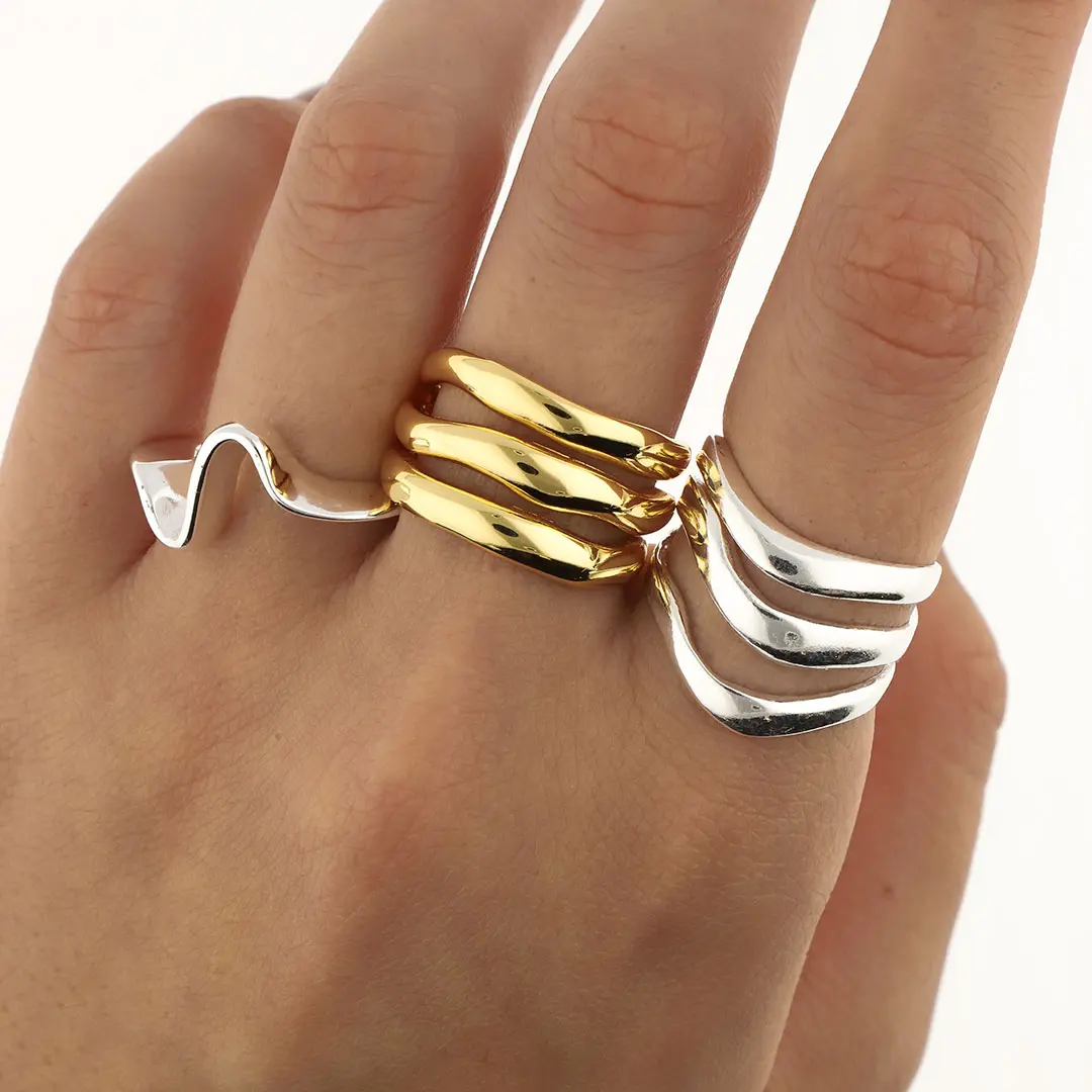 PACK X 3 ANILLOS ACERO BLANCO Y DORADO