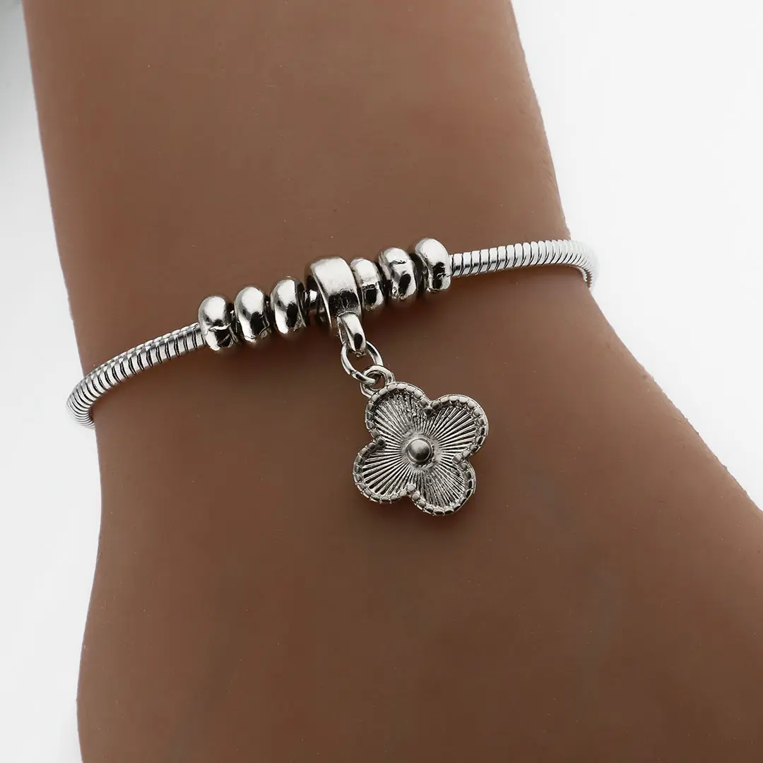 PULSERA CHARMAS TREBOL ACERO QUIRURGICO